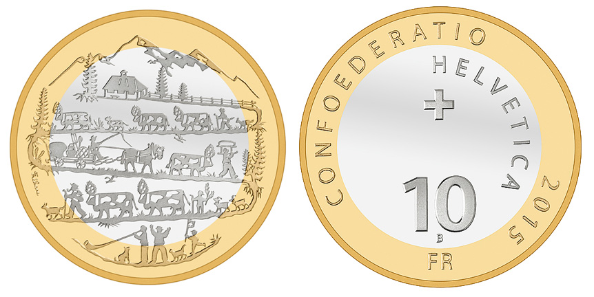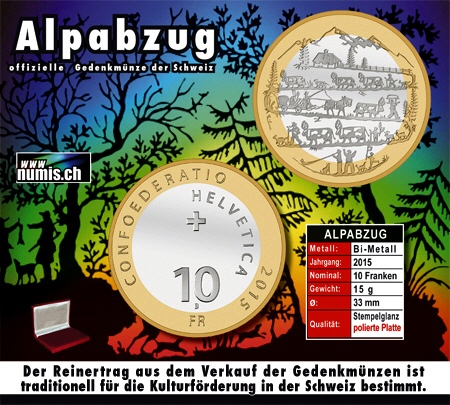 10 Fr. Sonder-Münze 2015, Bimetall, Alpabzug