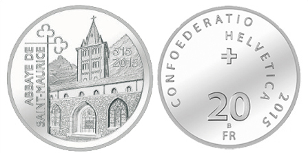 20 Fr. Sonder-Münze 2015, Silber, Abtei St-Maurice