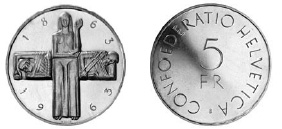 Wertseite: In der Mitte steht 5 FR. und am Rand steht CONFEDERATIO HELVETICA.