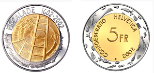 Beschreibung: Anlässlich des 400. Jahrestages der erfolgreichen Verteidigung der Stadt Genf gegen Karl Emanuel von Savoyen in der Nacht vom 11. zum 12. Dezember 1602. Der Legende nach wurde auch mit alltäglichen Dingen gekämpft, wie das Übergiessen der Angreifer mit Gemüsesuppe. Genf feiert jährlich mit einem Fest Escalade de Genève diese Verteidigung.