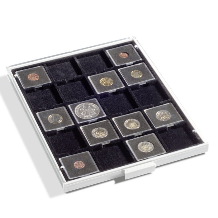 Zur Aufbewahrung von 20 Münzen und Kapseln bis 50 mm Ø, QUADRUM-Münzkapseln und Münzrähmchen