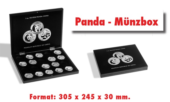 Die hochwertige, schwarze Münzkassette eignet sich hervorragend zum Sammeln der begehrten Panda-Silbermünzen (Ausführung 1 oz.) in Original-Kapseln.