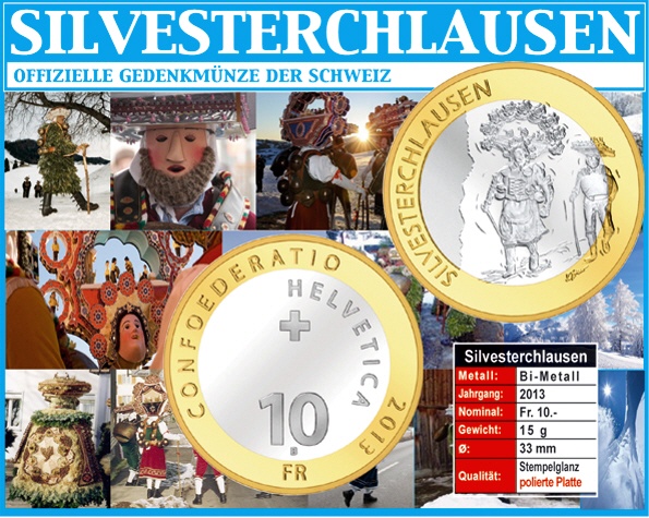10 Fr. Sonder-Münze 2013, Bimetall,Silvesterchlau.