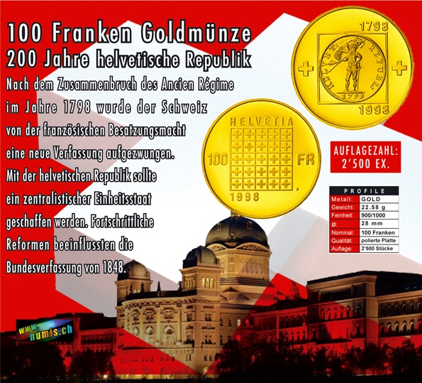 100 Fr. Sonder-Münze 1998 200 J. Helv. Republik