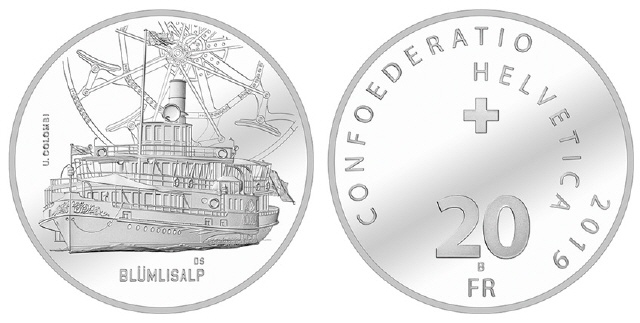 20 Fr. Sonder-Münze 2019, Dampfschiff Blümlisalp