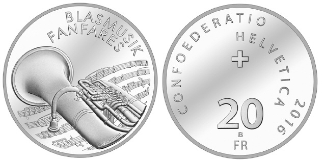 20 Fr. Sonder-Münze 2016, Silber, Blasmusik
