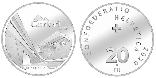 Münzbild: Neat Ceneri Tunnel Nominalwert: 20 Fr. Legierung: Silber 0,835 Gewicht: 20 g Durchmes...