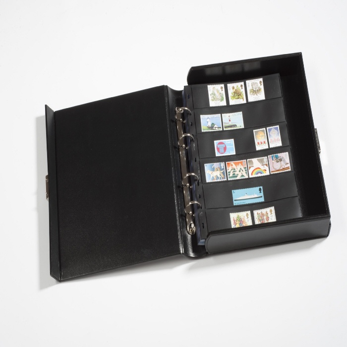 Hochwertiger Binder im CLASSIC-Design zur sicheren und repräsentativen Unterbringung von Münzen, Banknoten, Briefmarken und sonstigen Belegen. Zur individuellen Bestückung des Binders wählen Sie aus unserem umfangreichen OPTIMA-Hüllen-Sortiment. Durch die integrierte, abschliessbare Schutzkassette sind Ihre Sammelobjekte zuverlässig gegen Staub und Schmutz geschützt. Buchbinderische Verarbeitung, edler Kunstledereinband und stabile 4-O-Ring-Mechanik.